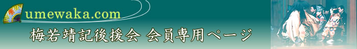 「招魂」全席自由一般\8,000 学生\3,000 特別会員及び正会員は、従来通り会員券1枚はお届けいたします。 11月10日に開催される「第九回 招魂」の会員券は、次号の会報誌と共に10月初旬にお届け予定です。本年の年会費はそのときお納めください。 梅若会虫干しのおしらせ 梅若家の面及び装束を虫干しのために蔵から出して、一般公開いたします。 日時:8月15日(水) 於 梅若能楽学院会館 中野区東中野2‐6‐14 TEL:03-3363-7748 最寄駅:JR・大江戸線 東中野駅、大江戸線・丸の内線 中野坂上駅 下車 徒歩約7分 費用:1000円/人 梅若六郎による能面・装束などの解説が、11時と14時にございます。 久しぶりの虫干しの一般公開となります。この機会に日頃舞台で見ている装束や面などを間近に見る絶好の機会ですので、ご参加をお待ちいたして居ります。 予め後援会までお知らせいただければ幸いです。 |